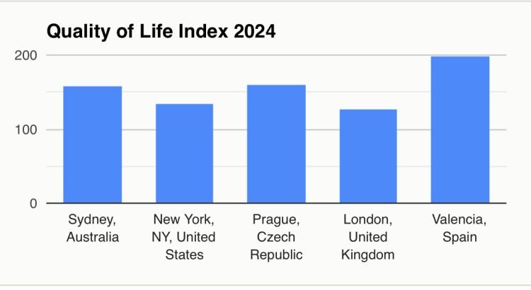 Volgens de cijfers zijn de prijzen van koopwoningen dit jaar met 33% gedaald van 3000 euro naar 2000 euro per vierkante meter. Dat klopt echt niet. Dit betekent dat de betaalbaarheid criteria, de verhouding tussen prijs en inkomen en nog veel meer worden beïnvloed en dat Valencia daardoor een hogere totaalscore krijgt omdat de weging voor onroerend goedprijzen vrij hoog is en andere dingen beïnvloedt. Zoals we hierboven al zeiden, stond Valencia vorig jaar op de 70e plaats van 195 steden voor levenskwaliteit. Daarom moeten we ons afvragen, wat is er veranderd om dit jaar vijfde te worden?