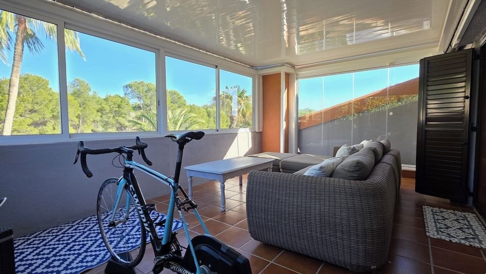 Het perceel van 697 m² is echter de echte blikvanger. Goed onderhouden tuin waar iemand door de jaren heen duidelijk trots op is geweest. Je hebt een charmante tuinstudio (perfect voor gasten of als hobbyruimte), een zwembad met filtersysteem onder een houten pergola, een jacuzzi ernaast, een barbecue-/paellero, een gereedschapsschuur, een aparte wasruimte met een kleine wijnkelder en twee opslagruimtes. Alles wat je nodig hebt, niets wat je niet nodig hebt. Geen overdaad om je zorgen over te maken.